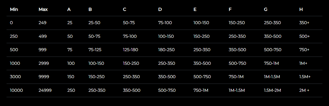 BUY IN TIER (PRIZE POOL SCALED IN 1000 USD)