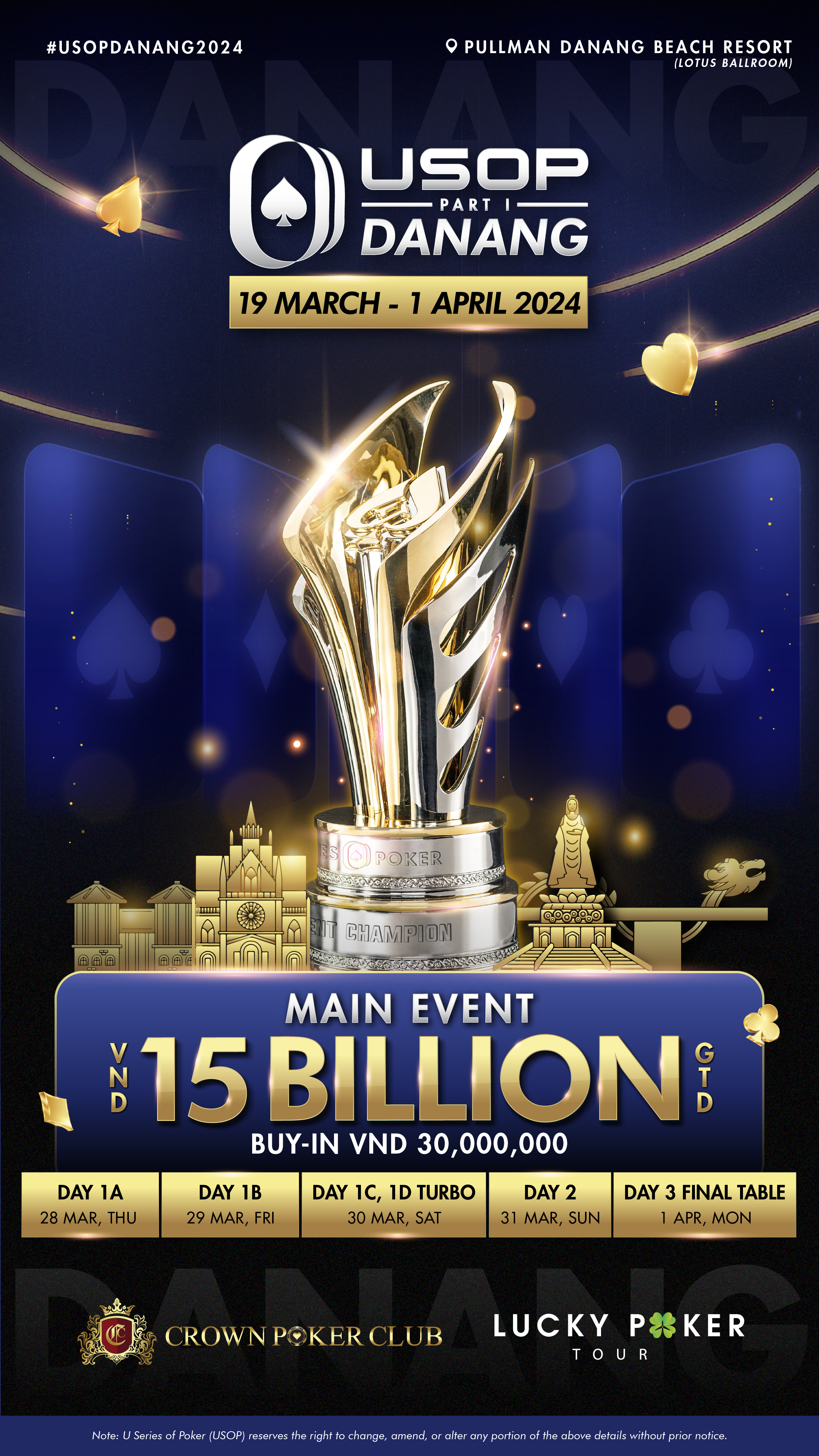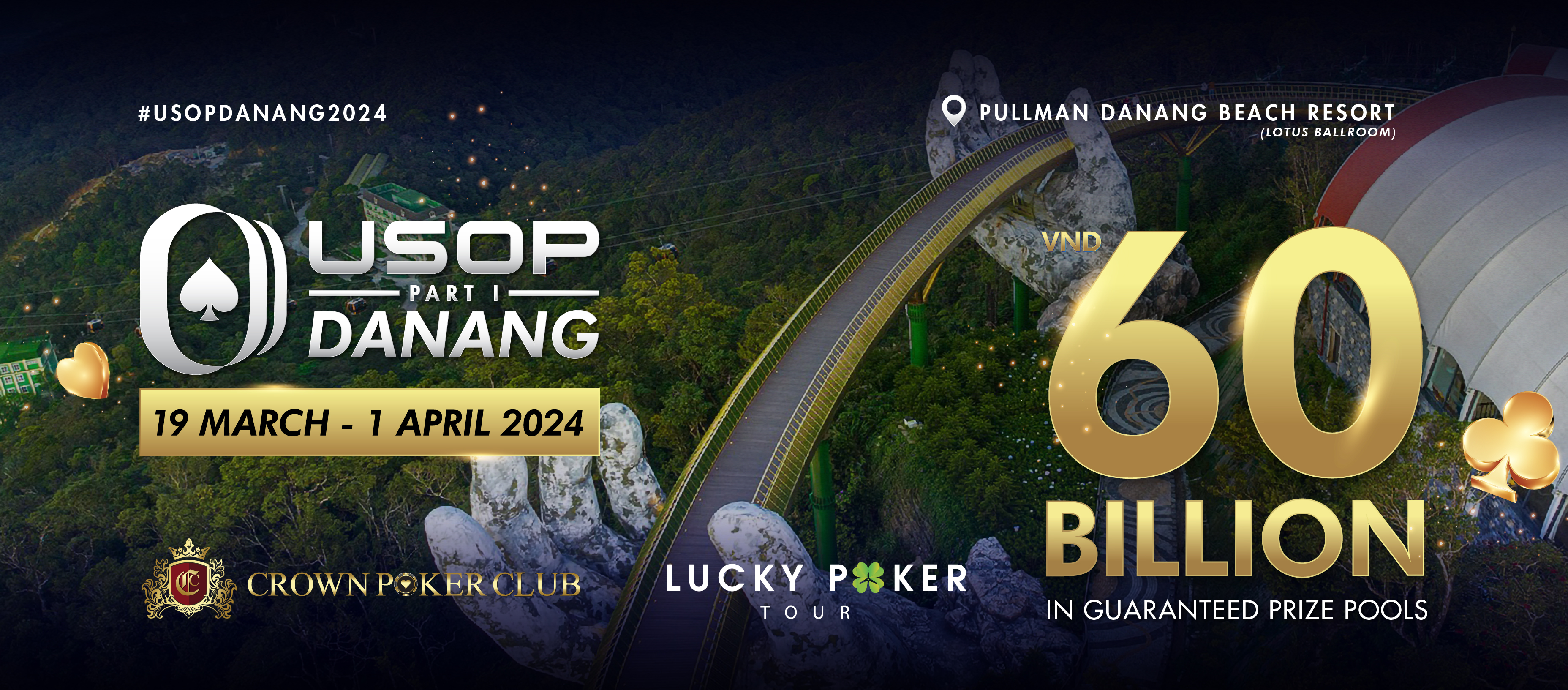 The much-anticipated U Series Of Poker (USOP) is set to make waves in Vietnam once again, joining forces with Crown Poker Club and Lucky Poker Tour for a thrilling poker spectacle. The stage is set at the prestigious Pullman Da Nang Beach Resort – Lotus Ballroom, where USOP Da Nang Part 1 2024 will kick off its poker extravaganza from the 19th of March to the 1st of April 2024. With a record-breaking VND 60 Billion prize pool, this edition promises to be the most exciting in USOP history, attracting poker aficionados from across the globe.