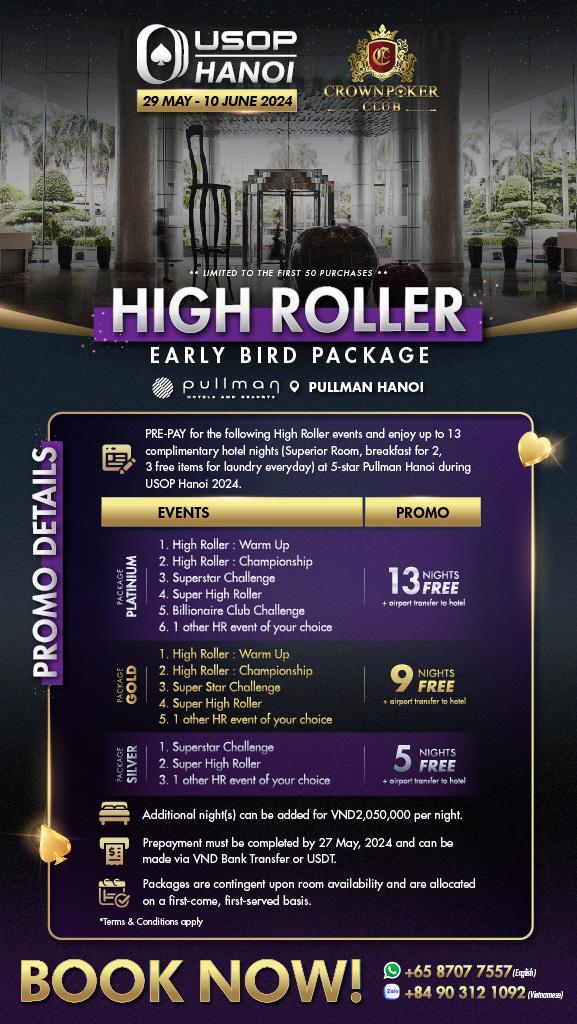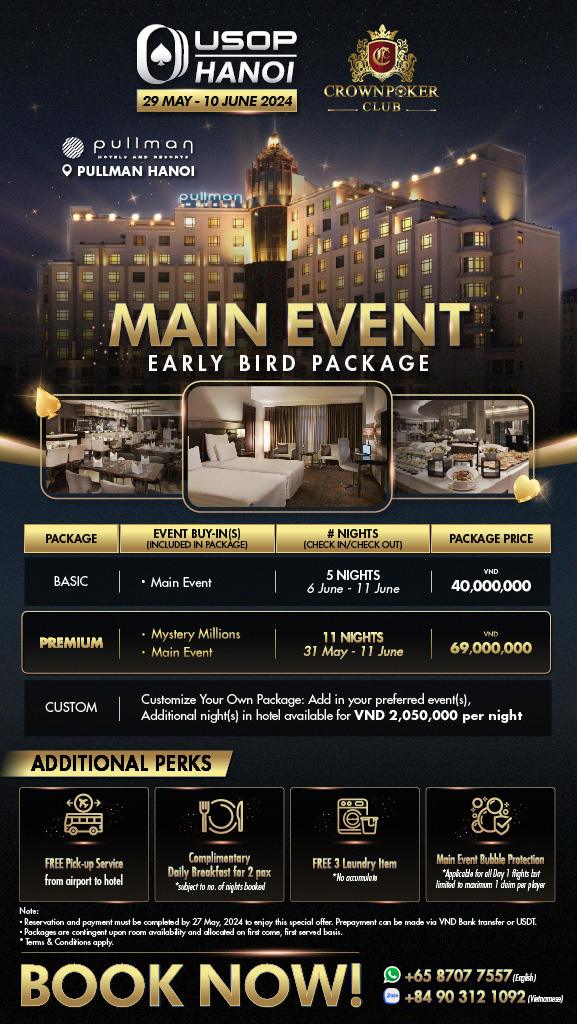 As the anticipation builds for USOP Hanoi, now is the time to seize the opportunity and elevate your poker adventure with our exclusive Early Bird Packages.