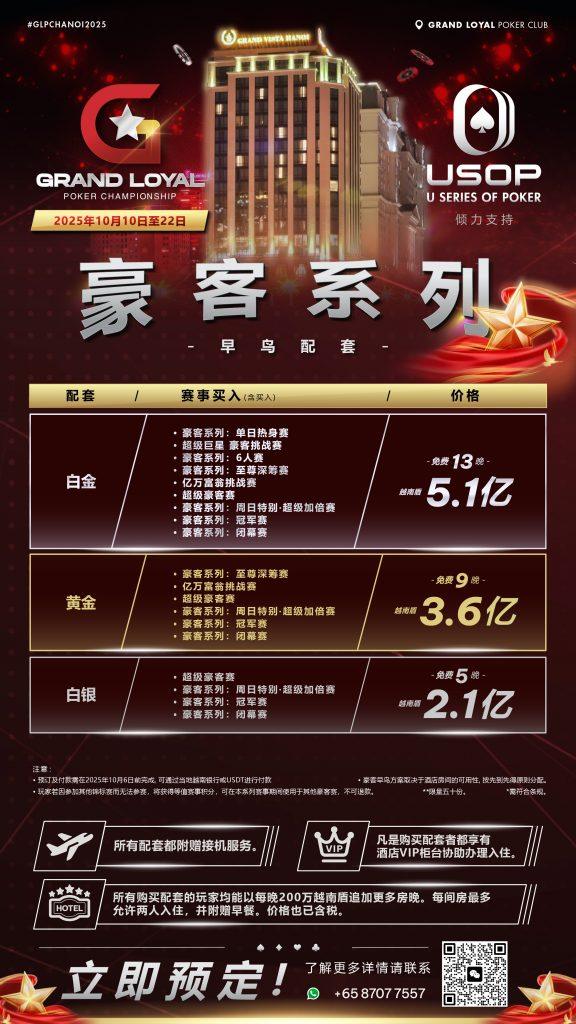 USOP is proud to be the exclusive sponsor of the Grand Loyal Championship, taking place from 10 to 22 October 2025 at Grand Loyal Club, Hanoi.The series opens on 10 October with a massive 7 Billion VND guaranteed Kick-Off Event, followed by 13 days of thrilling poker action and unforgettable moments.