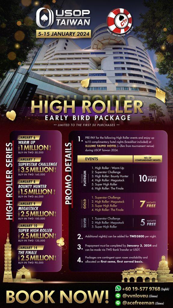 Jan 06, 2024 (Saturday) | Time | # | Event | Buy-In + Fee (TWD) | Starting Stack | Guarantee (TWD) |